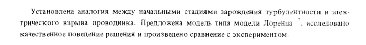 Установлена аналогия между начальными стадиями зарождения турбулентности и электрического взрыва проводника. Предложена модель типа модели Лоренца 7, исследовано качественное поведение решения и произведено сравнение с экспериментом.