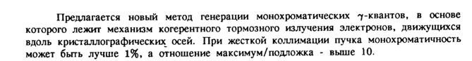 Предлагается новый метод генерации монохроматических 4-квантов, в основе которого лежит механизм когерентного тормозного излучения электронов, движущихся вдоль кристаллографических осей. При жесткой коллимации пучка монохроматичность может быть лучше 1%, а отношение максимум/подложка выше 10.