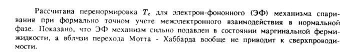 Рассчитана перенормировка Тс для электрон-фононного (ЭФ) механизма спаривания при формально точном учете межэлектронного взаимодействия в нормальной фазе. Показано, что ЭФ механизм сильно подавлен в состоянии маргинальной ферми-жидкости, а вблизи перехода Мотта Хаббарда вообще не приводит к сверхпроводимости.