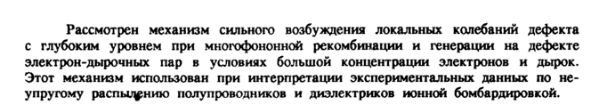 Рассмотрен механизм сильного возбуждения локальных колебаний дефекта с глубоким уровнем при многофононной рекомбинации и генерации на дефекте электрон-дырочных пар в условиях большой концентрации электронов и дырок. Этот механизм использован при интерпретации экспериментальных данных по неупругому распылению полупроводников и диэлектриков ионной бомбардировкой.