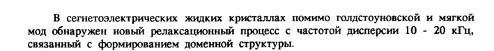 В сегнетоэлектрических жидких кристаллах помимо голдстоуновской и мягкой мод обнаружен новый релаксационный процесс с частотой дисперсии 10-20 кГц, связанный с формированием доменной структуры.
