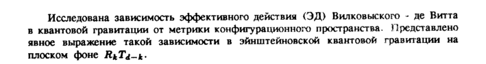 Исследована зависимость эффективного действия (ЭД) Вилковыского де Витта в квантовой гравитации от метрики конфигурационного пространства. Представлено явное выражение такой зависимости в эйнштейновской квантовой гравитации на плоском фоне RkTd-if
