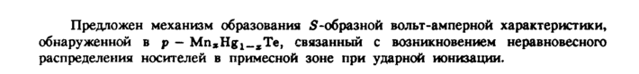 Предложен механизм образования 5-образной вольт-амперной характеристики, обнаруженной в ρ Mn,Hgx_xTe, связанный с возникновением неравновесного распределения носителей в примесной зоне при ударной ионизации.