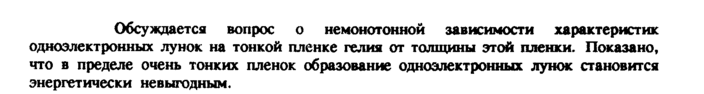 Обсуждается вопрос о немонотонной зависимости характеристик одноэлектронных лунок на тонкой пленке гелия от толщины этой пленки. Показано, что в пределе очень тонких пленок образование одноэлектронных лунок становится энергетически невыгодным.