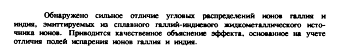 Обнаружено сильное отличие угловых распределений ионов галлия и индия, эмиттируемых из сплавного галлий-индиевого жидкометаллического источника ионов. Приводится качественное объяснение эффекта, основанное на учете отличия полей испарения ионов галлия и индия.