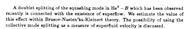 A doublet splitting of the squashing mode in He3 — В which has been observed recently is connected with the existence of superflow. We estimate the value of this effect within Brusov-Nasten'ka-Kleinert theory. The possibility of using the collective mode splitting as a measure of superfluid velocity is discussed.