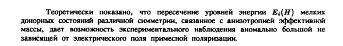 Теоретически показано, что пересечение уровней энергии JS,(H) мелких донорных состояний различной симметрии, связанное с анизотропией эффективной массы, дает возможность экспериментального наблюдения аномально большой не зависящей от электрического поля примесной поляризации.