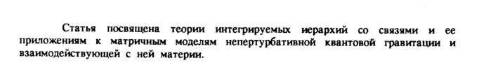 Статья посвящена теории интегрируемых иерархии со связями и ее приложениям к матричным моделям непертурбативной квантовой гравитации и взаимодействующей с ней материи.