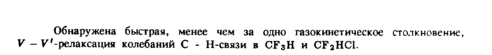 Обнаружена быстрая, менее чем за одно газокинетическое столкновение, V V '-релаксация колебаний С Η-связи в CF3H и CF3HCI.