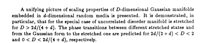 A unifying picture of scaling properties of D-dimensional Gaussian manifolds embedded in d-dimensional random media is presented. It is demonstrated, in particular, that for the special case of uncorrected disorder manifold is stretched for D > 2d/(4 + d). The phase transitions between different stretched states and from the Gaussian form to the stretched one are predicted for 2d/(2 + d) < D < 2 and 0 < D < 2d/(4 + d)t respectively.