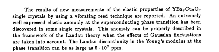 The results of new measurements of the elastic properties of õ÷ÁÚóÉÚï? single crystals by using a vibrating reed technique are reported. An extremely well expressed elastic anomaly at the superconducting phase transition has been discovered in some single crystals. This anomaly can be properly described in the framework of the Landau theory when the effects of Gaussian fluctuations are taken into account. The Landau discontinuity in the Young's modulus at the phase transition can be as large as 5 ž 102 ppm.