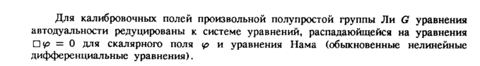 Для калибровочных полей произвольной полупростой группы Ли G уравнения автодуальности редуцированы к системе уравнений, распадаюйщейся на уравнения Π φ = 0 для скалярного поля φ и уравнения Нама (обыкновенные нелинейные дифференциальные уравнения).