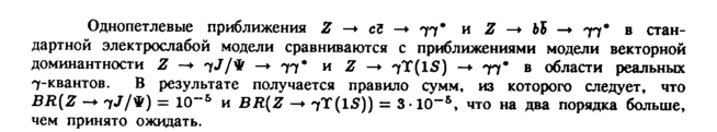 Однопетлевые приближения Ζ —► сг —► ή* и Ζ —► 65 —► τγ* в стандартной электрослабой модели сравниваются с приближениями модели векторной доминантности Ζ ~» "fJ/Чг —► γγ* и ζ yr(lS) ή* в области реальных ητ-квантов. В результате получается правило сумм, из которого следует, что BR(Z — -γ//¥) = Ю~5 и BR(Z -f YT(1S)) = 3 ·10~\ что на два порядка больше, чем принято ожидать.
