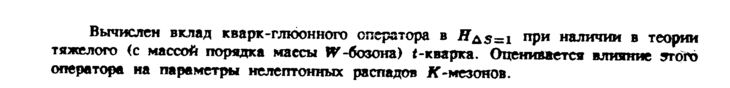 Вклад кварк-глюбнного оператора в эффективный Δ S = 1 нелептонный гамильтониан при mt MW