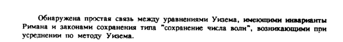 Обнаружена простая связь между уравнениями Уизема, имеющими инварианты Римана и законами сохранения типа "сохранение числа волн", возникающими при усреднении по методу Уизема.