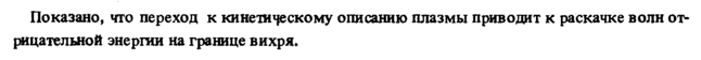 Показано, что переход к кинетическому описанию плазмы приводит к раскачке волн отрицательной энергии на границе вихря.