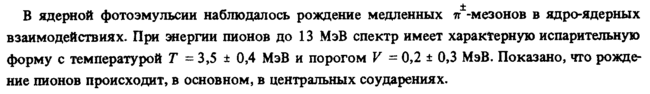 В ядерной фотоэмульсии наблюдалось рождение медленных ^-мезонов в ядро-ядерных взаимодействиях. При энергии пионов до 13 МэВ спектр имеет характерную испарительную форму с температурой Τ = 3,5 ± 0,4 МэВ и порогом V = 0,2 ± 0,3 МэВ. Показано, что рождение пионов происходит, в основном, в центральных соударениях.