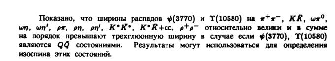 Показано, что ширины распадов У>(3770) и Т(10580) на г+т", KR, ияг°, ωη, ωη', p*t ρη, ρη*Κ*Κ*, K*R+cc, р+р~ относительно велики и в сумме на порядок превышают трехглюонную ширину в случае если ^(377Ό), Τ(10580) являются QQ состояниями. Результаты могут использоваться для определения изоспина этих состояний.