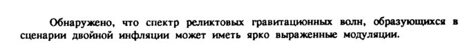 Обнаружено, что спектр реликтовых гравитационных волн, образующихся в сценарии двойной инфляции может иметь ярко выраженные модуляции.