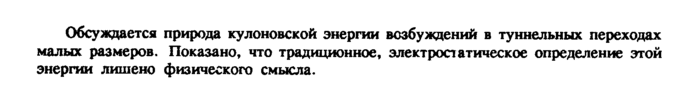 Обсуждается природа кулоновской энергии возбуждений в туннельных переходах малых размеров. Показано, что традиционное, электростатическое определение этой энергии лишено физического смысла.