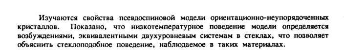 Изучаются свойства псевдоспиновой модели ориентационно-неупорядоченных кристаллов. Показано, что низкотемпературное поведение модели определяется возбуждениями, эквивалентными двухуровневым системам в стеклах, что позволяет объяснить стеклоподобное поведение, наблюдаемое в таких материалах.