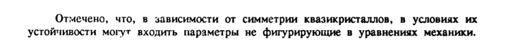 Отмечено, что, в зависимости от симметрии квазикристаллов, в условиях их устойчивости могут входить параметры не фигурирующие в уравнениях механики.