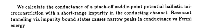 We calculate the conductance of a pinch-off saddle-point potential ballistic mi-croconstriction with a short-range impurity in the conducting channel. Resonant tunneling via impurity bound states causes narrow peaks in conductance vs Fermi energy