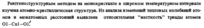 Ренттеноструктурным методом на монокристалле в широком температурном интервале изучена атомно-кристаллическая структура. Из анализа изменений тепловых колебаний атомов и межатомных расстояний выявлена относительная "жесткость" триады атомов Ol-Cul-Ol'