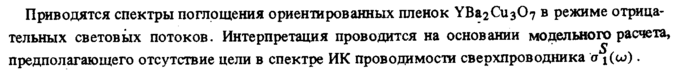 Приводятся спектры поглощения ориентированных пленок ¥Ва2Сиз07 в режиме отрицательных световых потоков. Интерпретация проводится на основании модельного расчета, предполагающего отсутствие цели в спектре ИК проводимости сверхпроводника σ χ(ω).