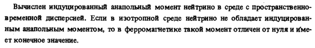 Вычислен индуцированный анапольный момент нейтрино в среде с пространственно-временной дисперсией. Если в изотропной среде нейтрино не обладает индуцированным аналольным моментом, то в ферромагнетике такой момент отличен от нуля и имеет конечное значение.