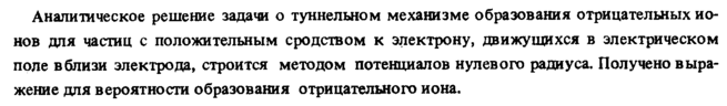 Туннельный механизм образования отрицательных ионов вблизи электрода