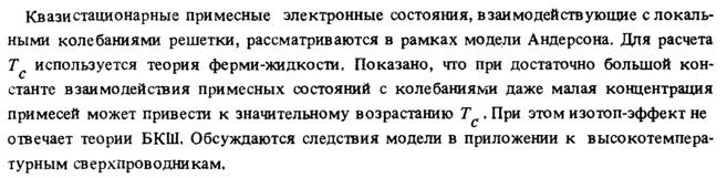 Квазистационарные примесные электронные состояния, взаимодействующие с локальными колебаниями решетки, рассматриваются в рамках модели Андерсона. Для расчета Τ используется теория ферми-жидкоста. Показано, что при достаточно большой константе взаимодействия примесных состояний с колебаниями даже малая концентрация примесей может привести к значительному возрастанию Тс . При этом изотоп-эффект не отвечает теории БКШ, Обсуждаются следствия модели в приложении к высокотемпературным сверхпроводникам.