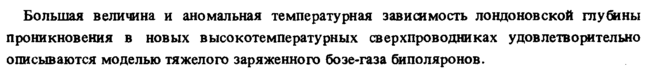 Большая величина и аномальная температурная зависимость лондоновской глубины проникновения в новых высокотемпературных сверхпроводниках удовлетворительно описываются моделью тяжелого заряженного бозе-газа биполяронов.