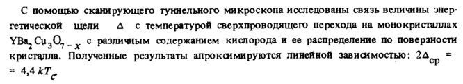 С помощью сканирующего туннельного микроскопа исследованы связь величины энергетической щели Δ с температурой сверхпроводящего перехода на монокристаллах YBa. Сц-OL с различным содержанием кислорода и ее распределение по поверзности кристалла. Полученные результаты апроксимируются линейной зависимостью: 2АС^ = = 4,4*Г,