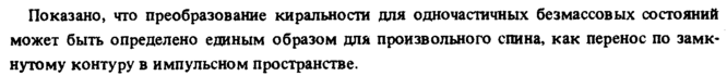 Показано, что преобразование киральности для о дно частичных без массовых состояний может быть определено единым образом для произвольного спина, как перенос по замкнутому контуру в импульсном пространстве.