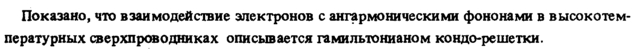 Показано, что взаимодействие электронов с ангармоническими фононами в высокотемпературных сверхпроводниках описывается гамильтонианом кондо-решетки.