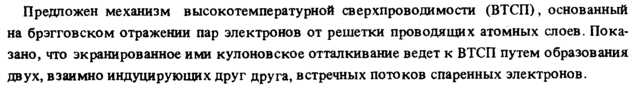 Предложен механизм высокотемпературной сверхпроводимости (ВТСП), основанный на брэгговском отражении пар электронов от решетки проводящих атомных слоев. Показано, что экранированное ими кулоновское отталкивание ведет к ВТСП путем образования двух, взаимно индуцирующих друг друга, встречных потоков спаренных электронов.