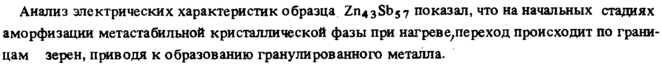 Анализ электрических характеристик образца Zn43Sb57 показал, что на начальных стадиях аморфизации метастабильной кристаллической фазы при нагреве;переход происходит по границам зерен, приводя к образованию гранулированного металла.