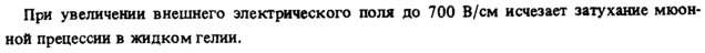 При увеличении внешнего электрического поля до 700 В/см исчезает затухание мюон ной прецессии в жидком гелии.