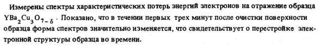 Измерены спектры характеристических потерь энергий электронов на отражение образца YBa2Cu30? δ . Показано, что в течении первых трех минут после очистки поверхности образца форма спектров значительно изменяется, что свидетельствует о перестройке электронной структуры образца во времени.