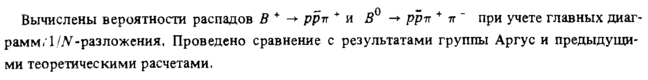Вычислены вероятности распадов В + -*■ ρρπ + и В -> ρρπ + π " при учете главных диаграмм ΛΙΝ-разложения, Проведено сравнение с результатами группы Аргус и предыдущими теоретическими расчетами,