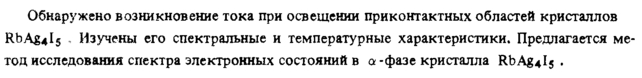 Обнаружено возникновение тока при освещении приконтактных областей кристаллов RbA^uIs , Изучены его спектральные и температурные характеристики. Предлагается метод исследования спектра электронных состояний в α-фазе кристалла RbAg4I5 .