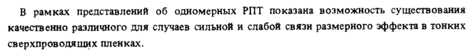 В рамках представлений об одномерных РПТ показана возможность существования качественно различного для случаев сильной и слабой связи размерного эффекта в тонких сверхпроводящих пленках.
