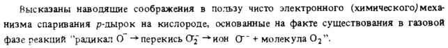 Высказаны наводящие соображения в пользу чисто электронного (химического,) механизма спаривания р-дырок на кислороде, основанные на факте существования в газовой фазе реакций "радикал О перекись <У{ -^ион СГ~ + молекула 02".
