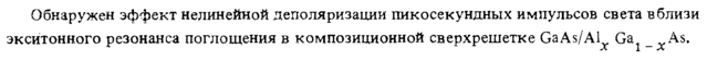 Обнаружен эффект нелинейной деполяризации пикосекундных импульсов света вблизи экситонного резонанса поглощения в композиционной сверхрешетке GaAs/Al Ga As.