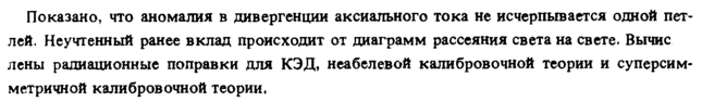 Показано, что аномалия в дивергенции аксиального тока не исчерпывается одной петлей. Неучтенный ранее вклад происходит от диаграмм рассеяния света на свете. Вычис лены радиационные поправки для КЭД, неабелевой калибровочной теории и суперсимметричной калибровочной теории.
