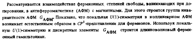 Фермионные состояния в антиферромагнетике и локальная U(1)-симметрия
