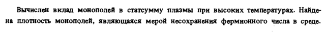 Вычислен вклад монополей в статсумму плазмы при высоких температурах. Найдена плотность монополей, являющаяся мерой несохранения фермионного числа в среде.