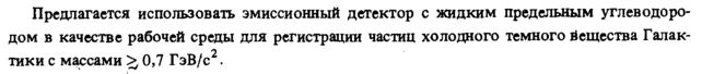 Предлагается использовать эмиссионный детектор с жидким предельным углеводородом в качестве рабочей среды для регистрации частиц холодного темного вещества Галактики с массами >, 0,7 ГэВ/с2.