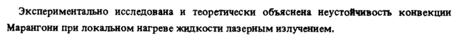 Экспериментально исследована и теоретически объяснена неустойчивость конвекции Марангони при локальном нагреве жидкости лазерным излучением,